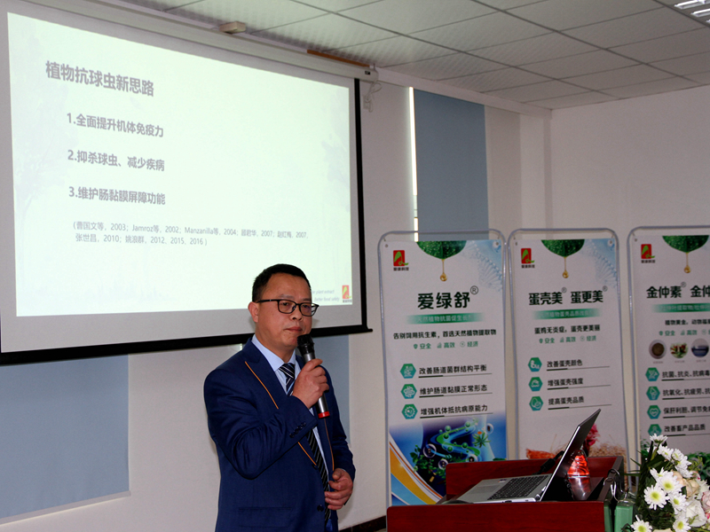 手艺效劳部总监杨强先生带来《自然植物抗球虫剂研究与高效应用》的主题分享,,,,,,杨先生重点展示了888集团集团与华南农业大学科研团队对植物提取物在抗球虫机理方面的研究效果。 。。他用大宗的试验数据,,,,,,解说了植物提取物产品在抗球虫方面的奇异功效和突出优势。 。。
