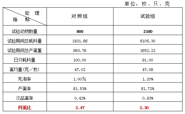 2.3.4 料蛋比 比照组料蛋比2.47:1,,,试验组2.30:1,,,比照组比试验组高7.39%,,,差别显著(P<0.05)。。。。。
