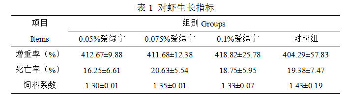 4.1 888集团宁对对虾生长性能的影响