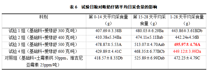 平均日采食量(ADFI):天天以重复为单位纪录日采食量,,,,,然后于第14天和第28天以重复为单位盘算耗料量,,,,,并盘算每个重复的ADFI;;;;;