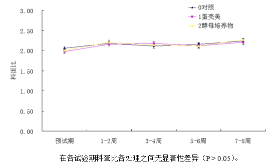 2.1 添加蛋壳美和酵母作育物对生产性能指标的影响